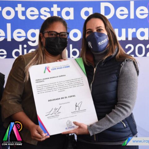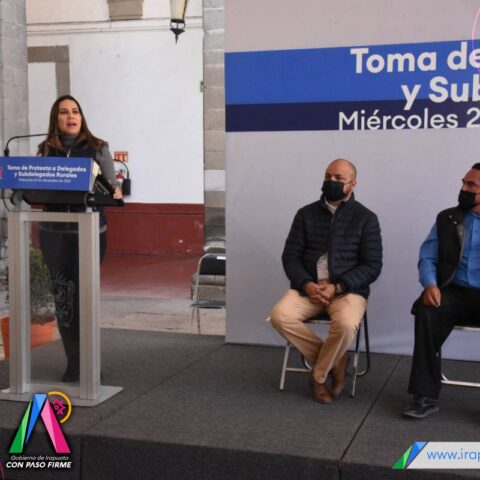 Durante la toma de protesta, Lorena Alfaro García, presidenta municipal, pidió a las y los delegados trabajar unidos para lograr el progreso de sus localidades, así como ser solidarios con el prójimo e impulsar programas en beneficio de las y los irapuatenses.