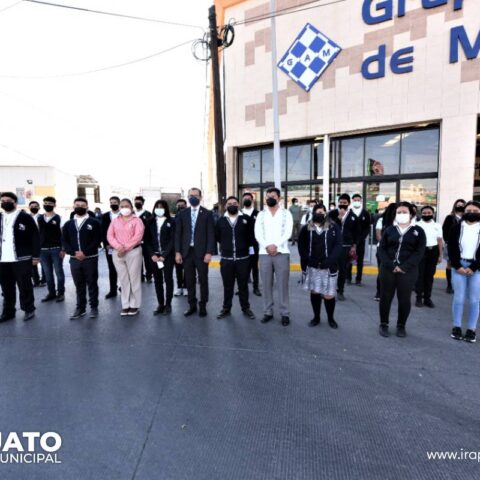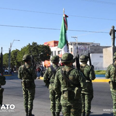 Irapuato, Gto. 21 de marzo del 2022.- Junto a personal del Ejército y alumnos del CECyTEG, autoridades municipales conmemoraron el 216 Aniversario del Natalicio de Benito Juárez.