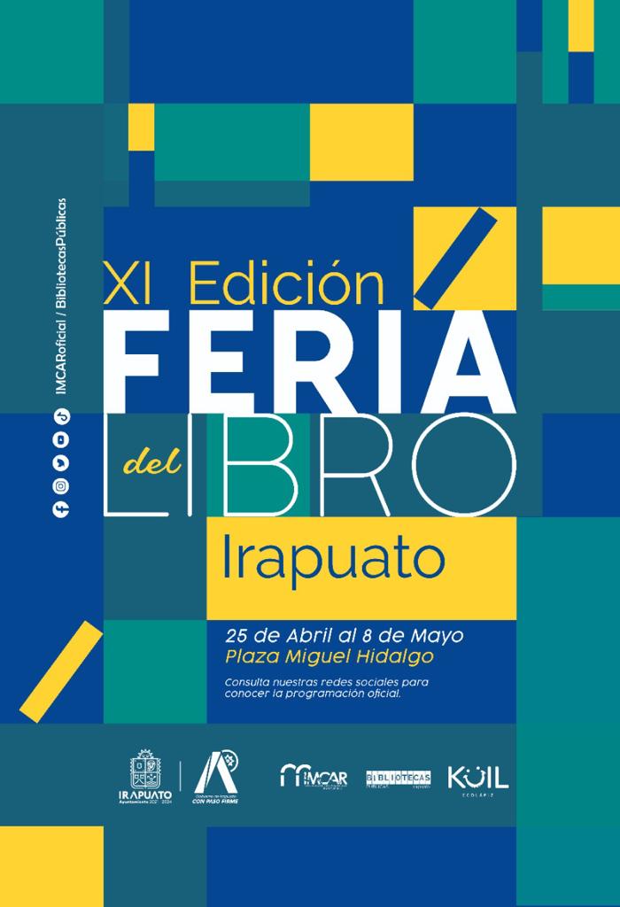 Irapuato, Gto. 23 de abril del 2022.- Del 25 de abril al 8 de mayo en la plazuela Miguel Hidalgo, se llevará a cabo la XI Feria del Libro de Irapuato con la participación de 35 expositores.
