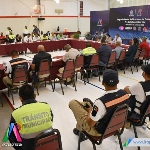 Irapuato, Gto. 01 de junio del 2022.- Irapuato fue sede de la Segunda Sesión Ordinaria de Directores de Tránsito en Pro de la Seguridad Vial, a la que acudieron autoridades de los 46 municipios del estado, así como de la Secretaría de Salud de Guanajuato.