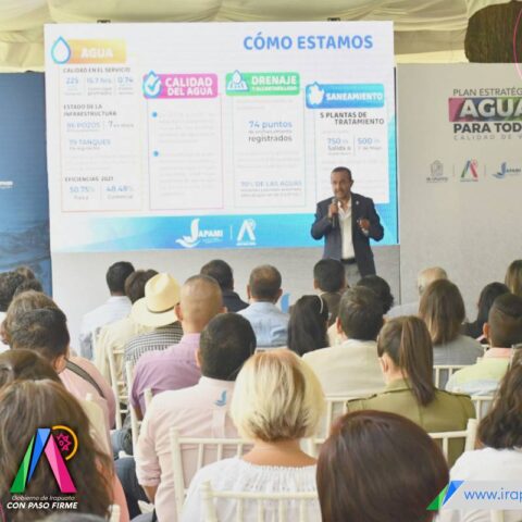 Irapuato, Gto. 13 de junio del 2022.- Con el objetivo de mejorar la calidad de los servicios de agua, saneamiento y drenaje, el Gobierno Municipal a través de la Junta de Agua Potable, Drenaje, Alcantarillado y Saneamiento (JAPAMI), presentó el Plan Estratégico ‘Agua para Todos’.