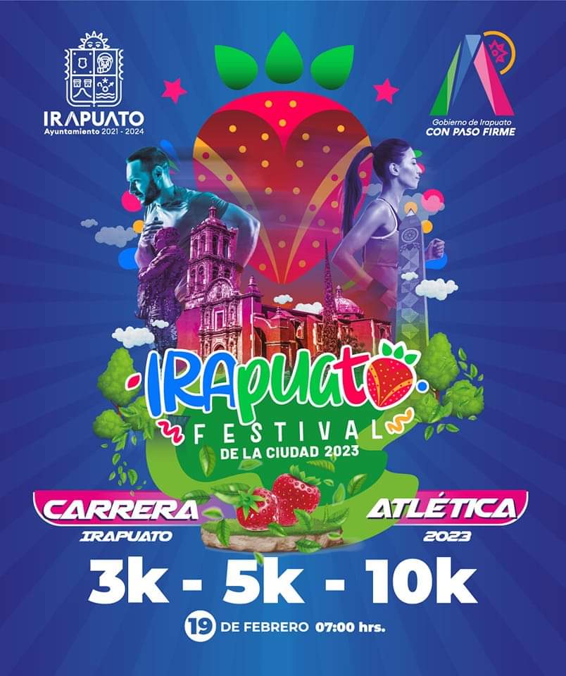 Irapuato, Gto. 13 de febrero del 2023 .- Con la finalidad de fomentar entre la población irapuatense la práctica del deporte y la sana convivencia, además de conmemorar el aniversario 476 de la ciudad, la Comisión Municipal del Deporte y Atención a la Juventud (Comudaj) invita a participar en la Carrera Atlética 2023 del ‘Festival de la Ciudad’.