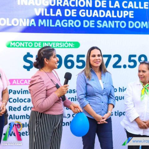 Irapuato, Gto. 16 de mayo del 2023 .- Las familias de la calle Villa de Guadalupe en la colonia Milagro de Santo Domingo, ya gozan de una calle pavimentada a base de concreto hidráulico.