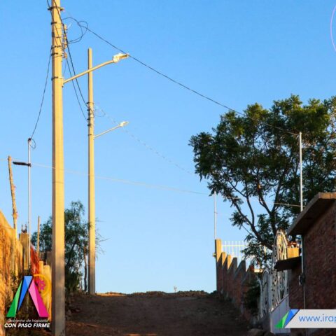 Irapuato, Gto. 18 de junio del 2023 .- Las calles Geranio, Rosales, Fresnos y Laurel de la comunidad Lo de Sierra, se iluminaron gracias a la ampliación de la red eléctrica que implementó el Gobierno Municipal, con lo que vecinos de la zona pueden transitar de manera más segura por las vialidades.