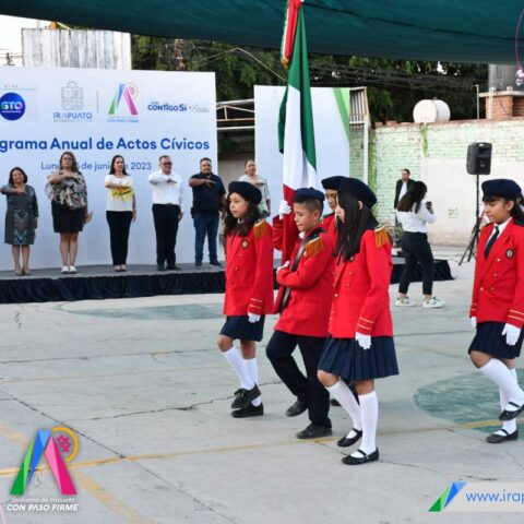 Este anuncio se hizo durante los honores a la bandera, acto en el que participaron autoridades, docentes, estudiantes, así como padres y madres de familia, para promover los valores y el amor a la patria, como parte del programa anual de Actos Cívicos que impulsa el Gobierno de Irapuato.