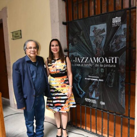 Guanajuato, Gto. 07 de julio del 2023 .- “Jazzamoart. Viaje al fondo de la pintura”, es la colección del artista irapuatense, Francisco Javier Vázquez Estupiñán, inspirada en el jazz, el amor y el arte, que se encuentra expuesta en el Museo Conde Rul, en Guanajuato capital, y estará disponible hasta el 10 de septiembre.