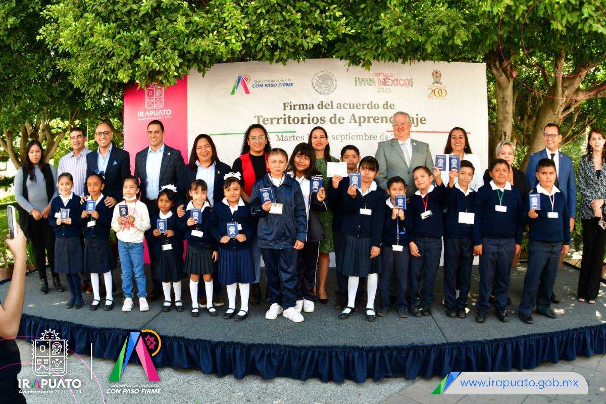 Irapuato, Gto. 12 de septiembre del 2023 .- Para fortalecer el conocimiento de la cultura e historia de Irapuato entre los niños y niñas, autoridades municipales y estatales firmaron el convenio ‘Territorio de Aprendizaje’.