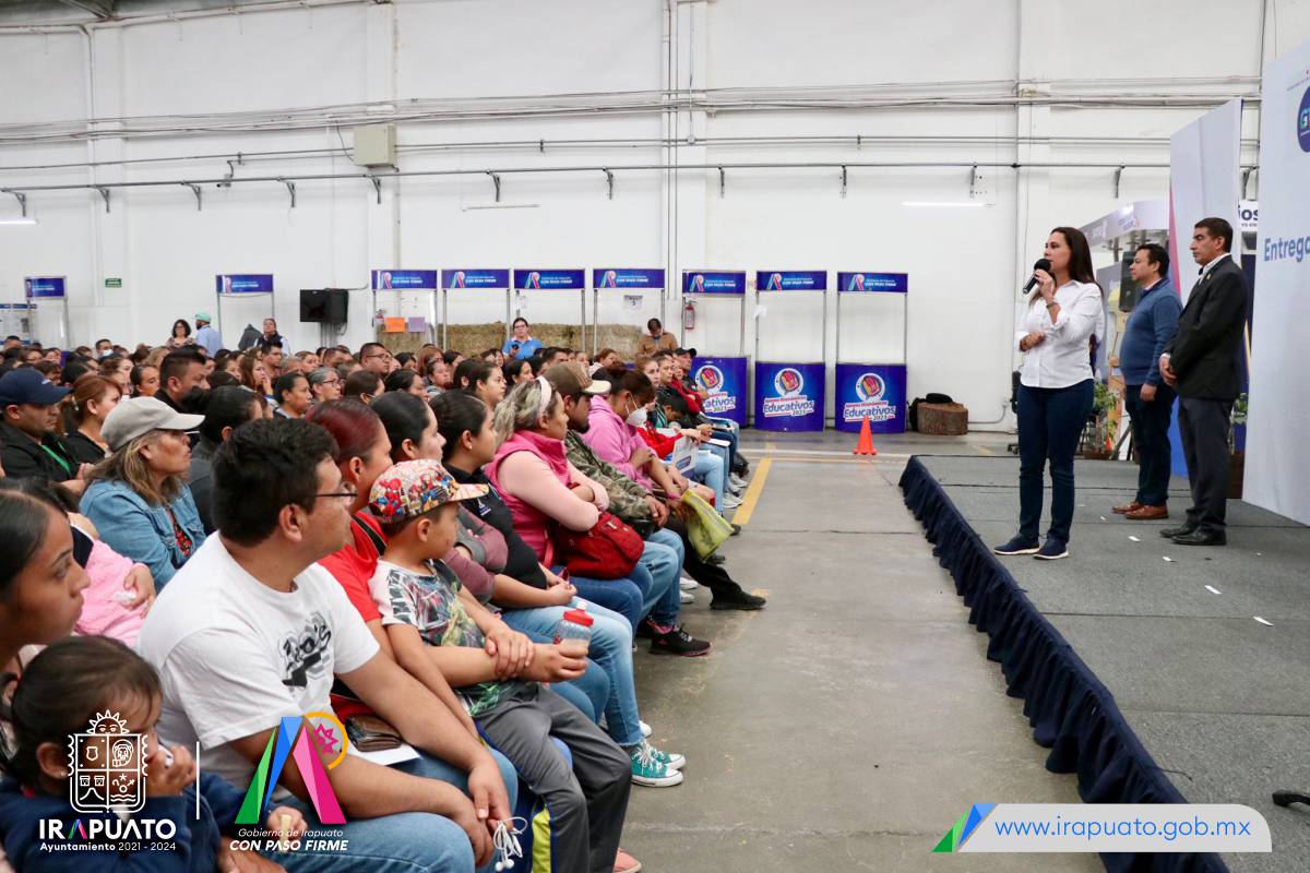 Lorena Alfaro García, presidenta de Irapuato, destacó que en su Administración aumentó de manera significativa el número de beneficiados, con la finalidad de fortalecer la educación en el municipio y llegar a más familias.