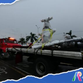 Irapuato, Gto. 01 de octubre del 2024 .- Cinco esculturas monumentales realizadas por Leonora Carrington, una de las más grandes exponentes del surrealismo, llegaron a la Plaza del Artista, en el Centro Histórico de la ciudad.