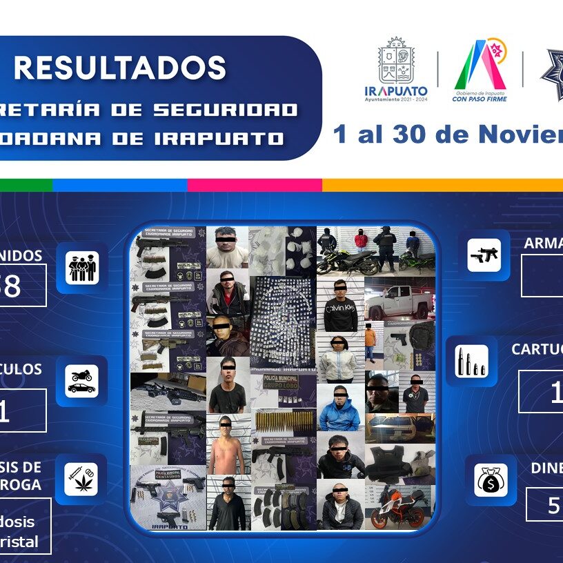Estas cifras son el resultado de los dispositivos de prevención y seguridad implementados en la zona urbana y rural por personal de la corporación, en coordinación con autoridades de los tres niveles de gobierno que tienen como principal el objetivo de construir un Irapuato de paz y prosperidad para la ciudadanía y visitantes al municipio.