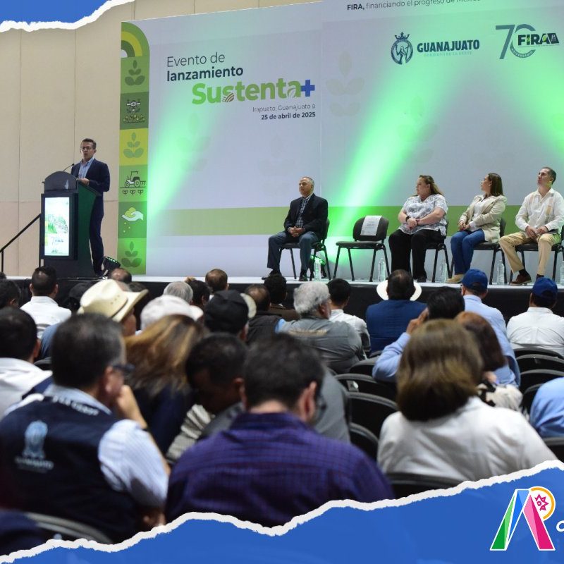 Irapuato, Gto. 25 de abril del 2025 .- Los Fideicomisos Instituidos en Relación con la Agricultura, FIRA-Banco de México, anunciaron el lanzamiento de Sustenta+, una iniciativa estratégica que busca acelerar la adopción de prácticas agrícolas sostenibles mediante incentivos financieros, innovaciones tecnológicas sustentables y financiamiento a proyectos agrícolas que favorezcan el cuidado del medio ambiente.