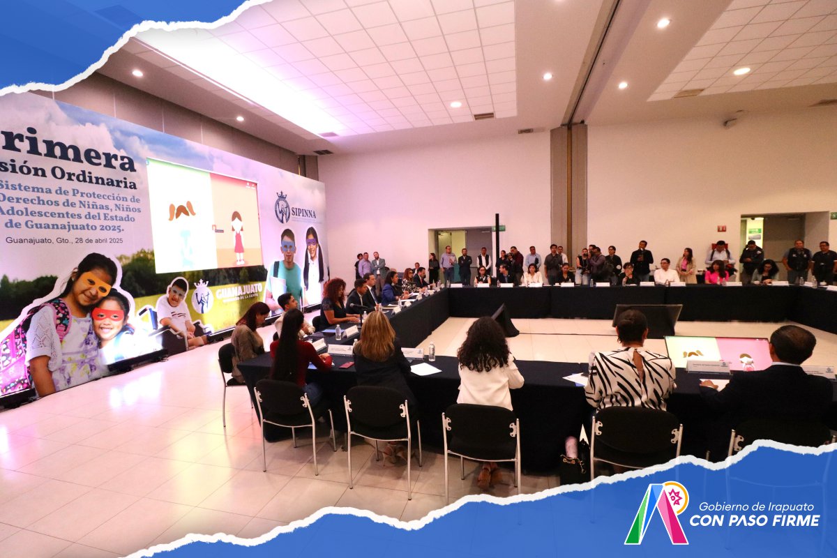Irapuato, Gto. 28 de abril del 2025 .- Por el impulso de políticas públicas enfocadas al desarrollo de la niñez, el Gobierno Municipal, encabezado por la presidenta Lorena Alfaro García, representó a los municipios de Guanajuato en la primera sesión ordinaria del Sistema de Protección de los Derechos de Niñas, Niños y Adolescentes (Sipinna).