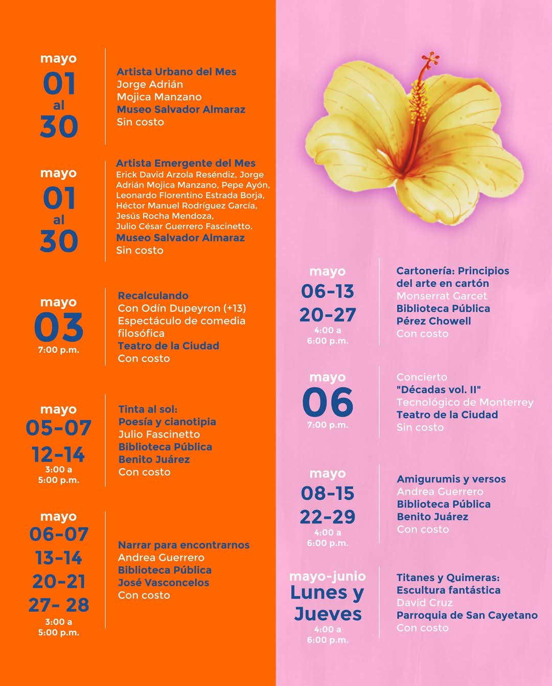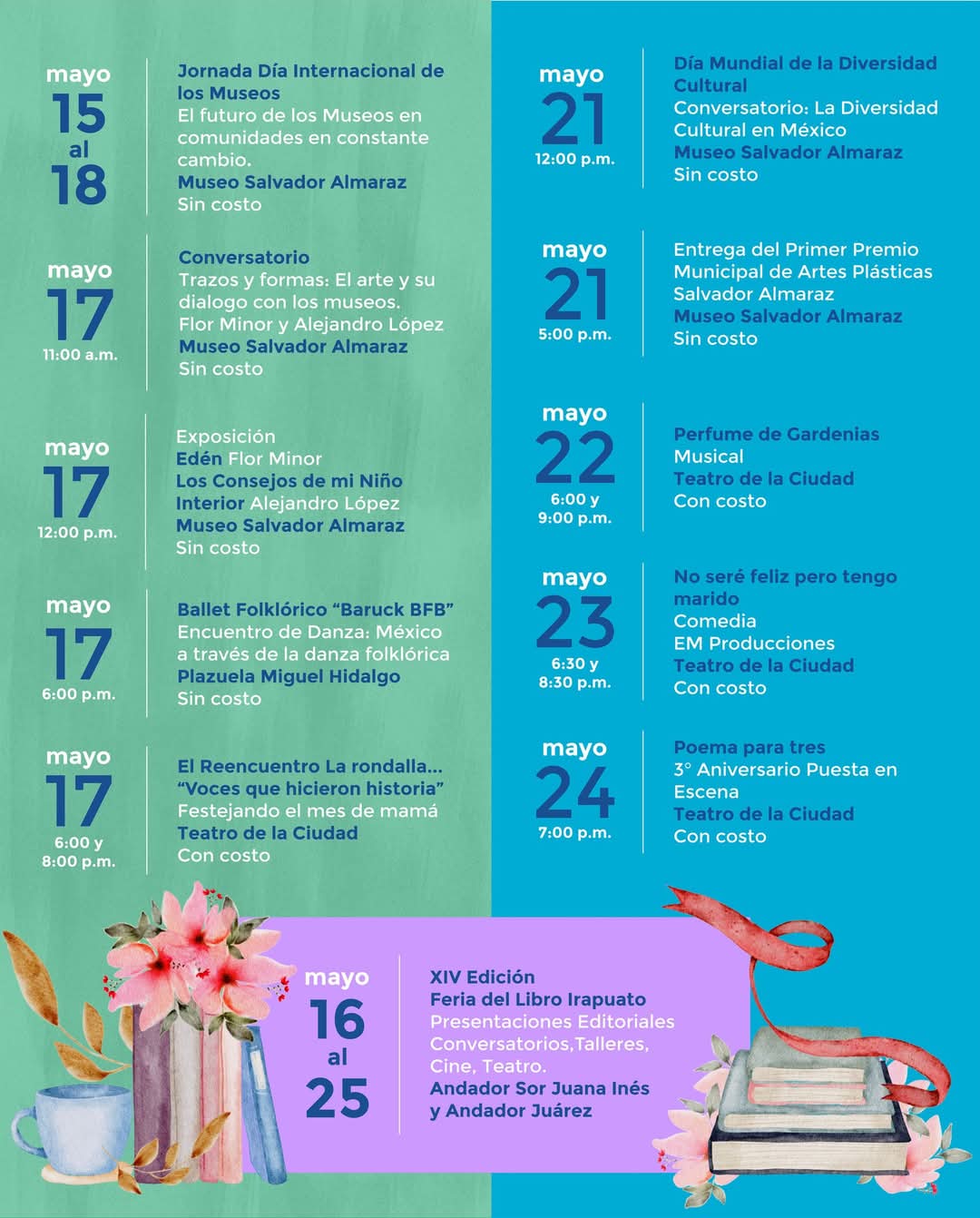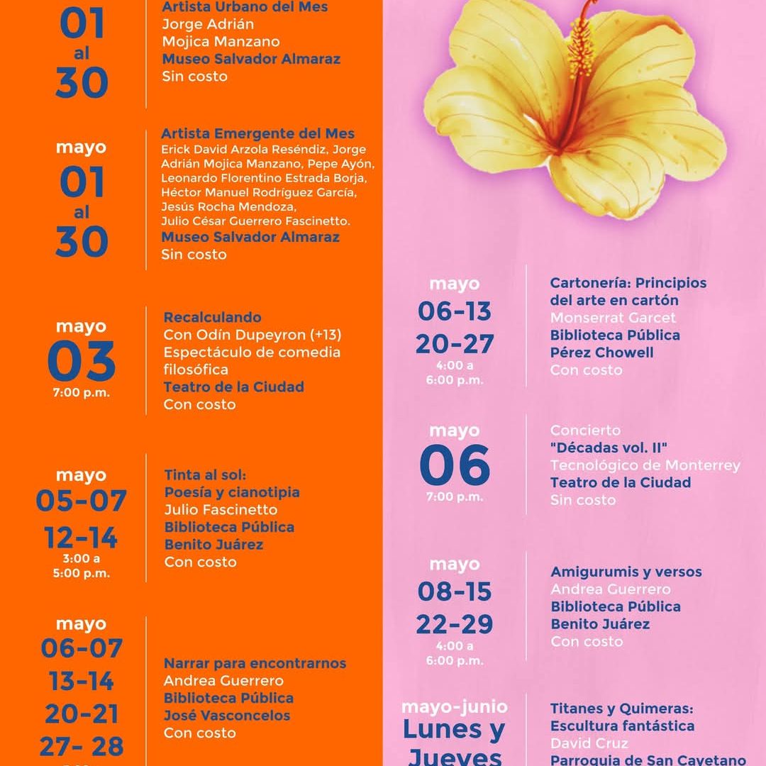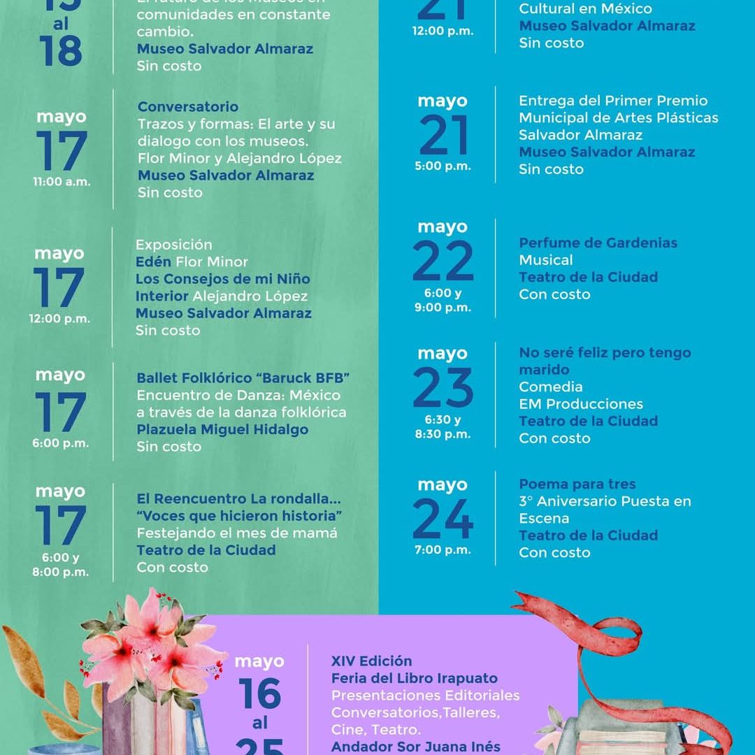 Irapuato, Gto. 02 de mayo del 2025 .- El mes de mayo estará lleno de actividades culturales y recreativas, para el disfrute de las familias irapuatenses.