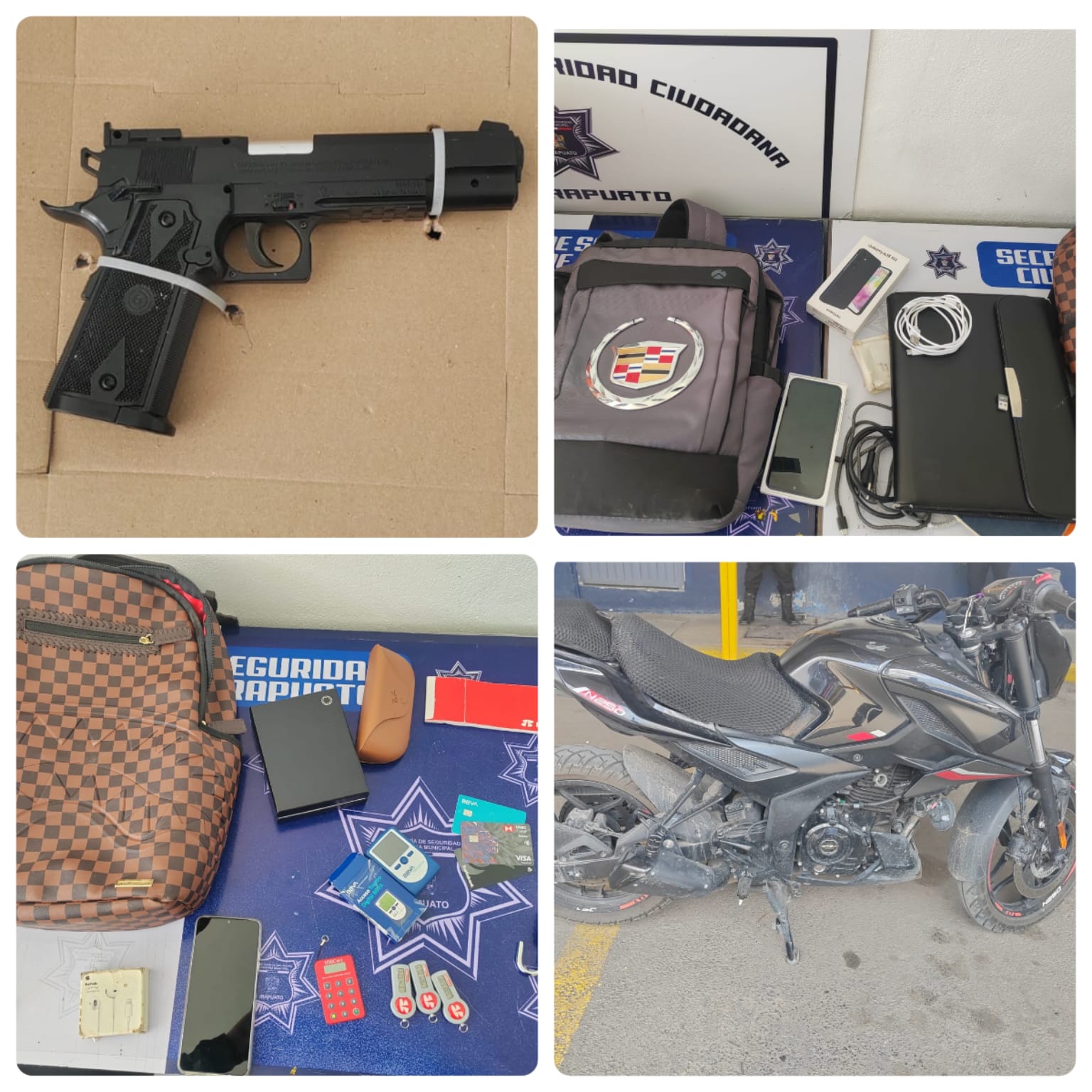 - Recuperaron pertenencias de clientes y a él se le decomisó una pistola, así como una motocicleta con caja de repartidor.