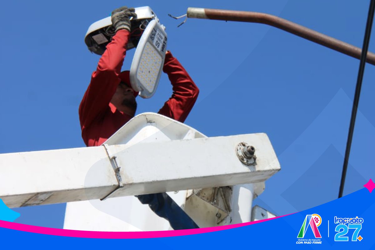 Irapuato, Gto. 19 de enero del 2026 .- Con el objetivo de mejorar la imagen urbana y la eficiencia energética de la ciudad, el Gobierno de Irapuato registra un avance del 40% en el proyecto de modernización del alumbrado público.