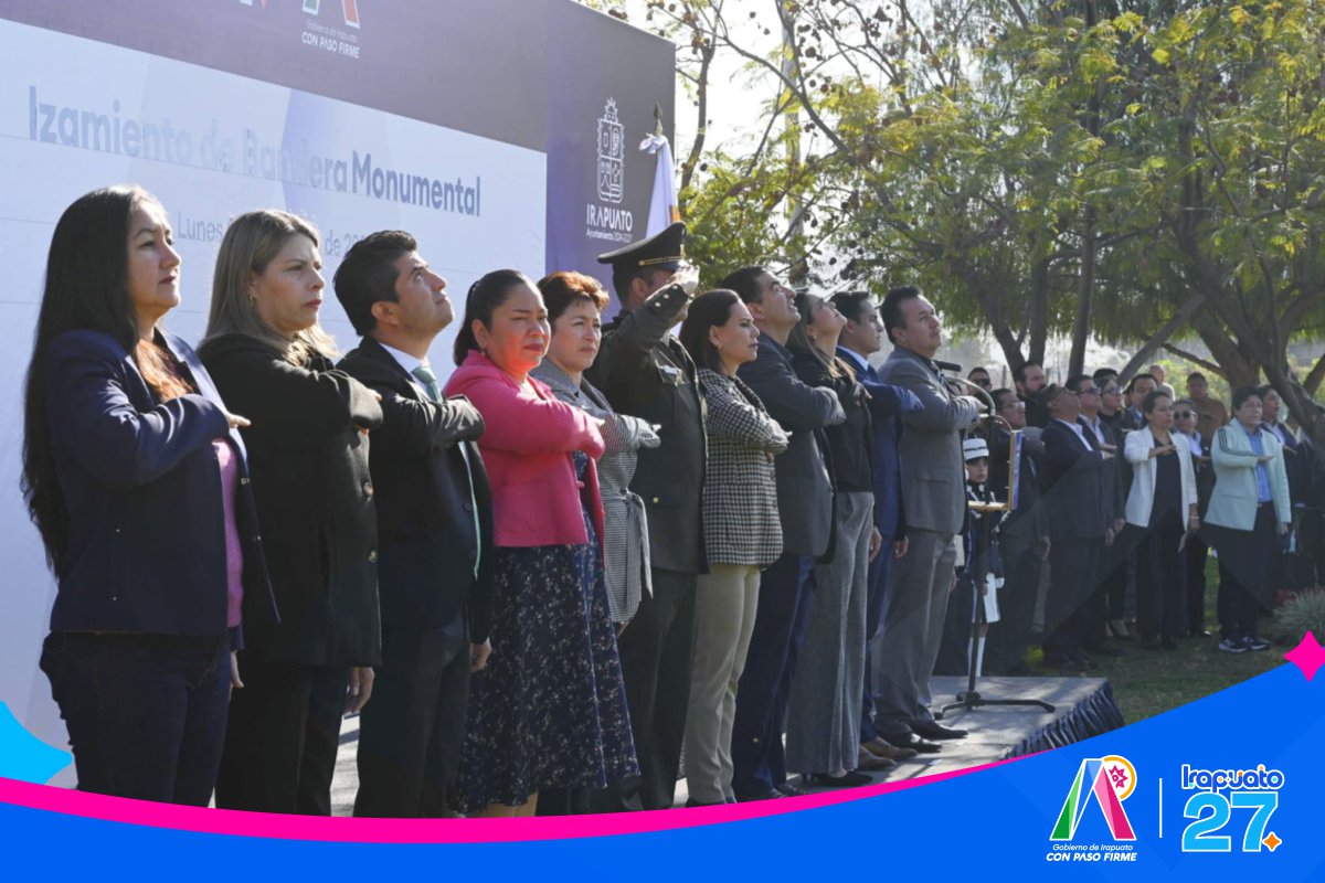“En este mes que nos llena de orgullo, al conmemorar el aniversario de nuestra ciudad, estar presentes frente a nuestra bandera es un acto de compromiso, respeto y amor por México y por Irapuato. Queremos que todas y todos los irapuatenses hablen bien de su municipio y que, ante los desafíos, nos pongamos a trabajar y a proponer juntos”, expresó.