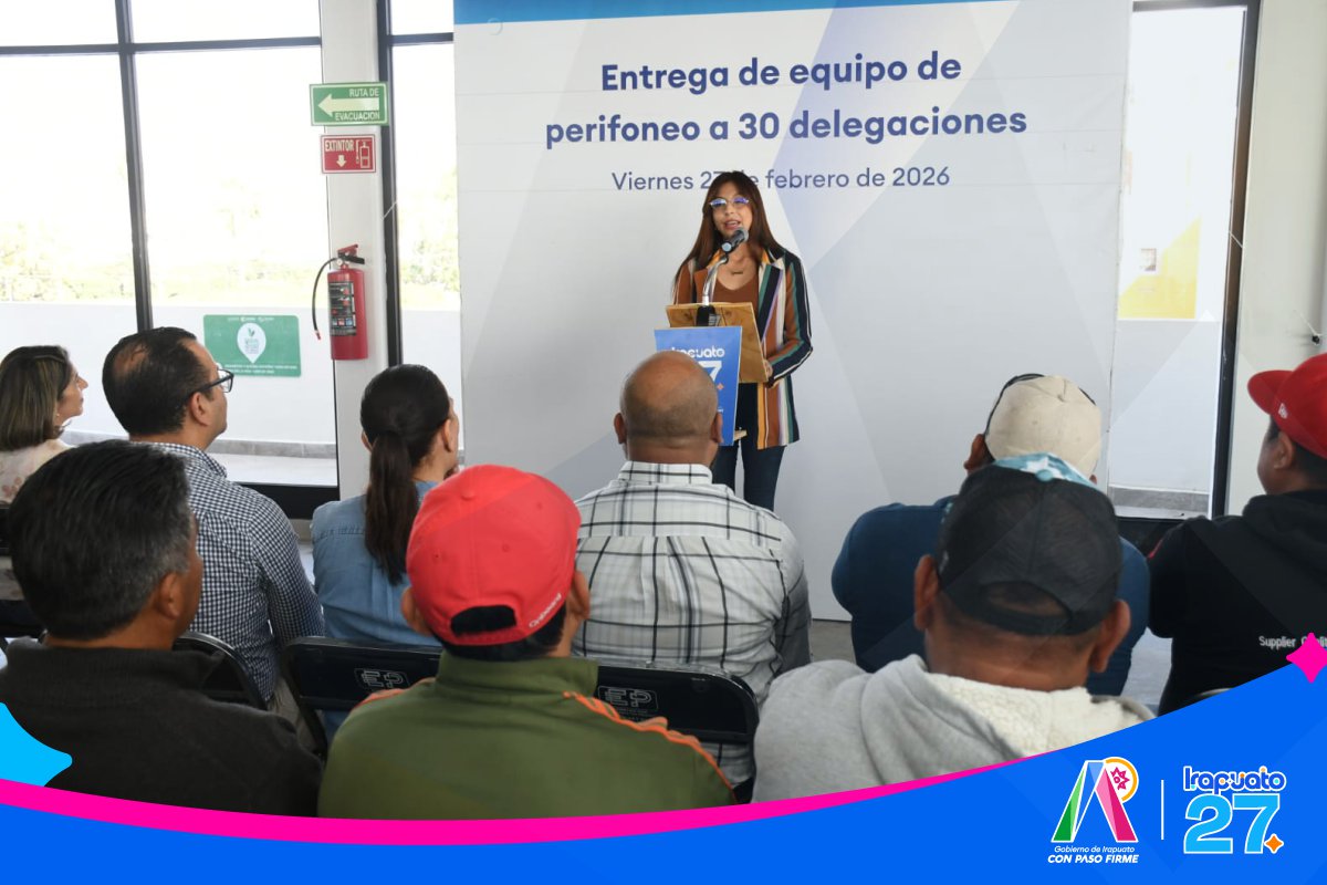 Irapuato, Gto. 27 de febrero del 2026 .- Con el objetivo de fortalecer la comunicación, la organización comunitaria y la difusión de información relevante, autoridades del Gobierno de Irapuato entregaron equipo de perifoneo a habitantes de 30 comunidades rurales, con lo que suman ya 90 localidades que cuentan con este equipamiento.