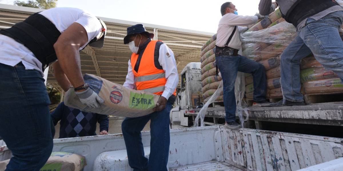 Reparten 18 toneladas de cemento y mortero Benefician a familias irapuatenses