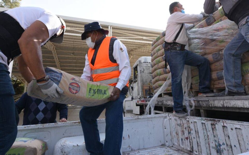 Reparten 18 toneladas de cemento y mortero Benefician a familias irapuatenses